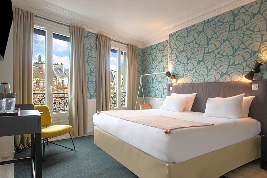 The Deluxe rooms are large rooms of about 66 ft², ideal for a family stay in Paris. Equipped with a bath or shower and a large TV. Wi-Fi access is free and the rooms have air conditioning. They will seduce you with their size and equipment. All our deluxe rooms are located on the street side.